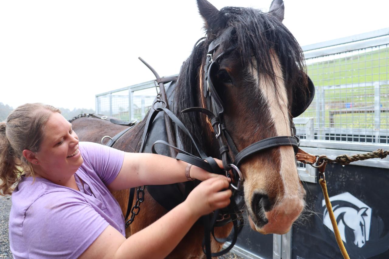 The horses are taller than average at around 17 hands high but actually small for a Shire, although Emma is grateful it’s not quite as high to haul the heavy harness up onto their big bodies.