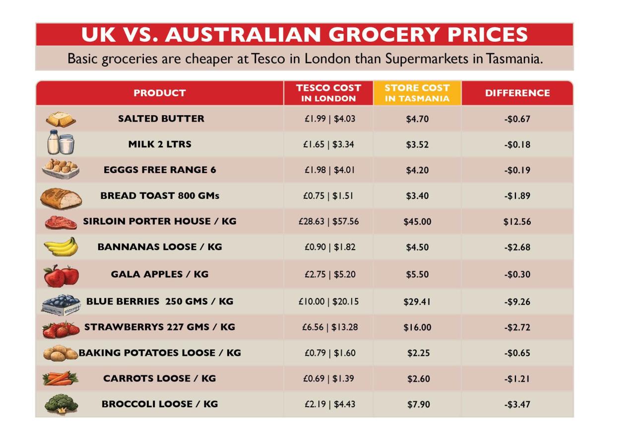Groceries now cheaper in London than Tasmania