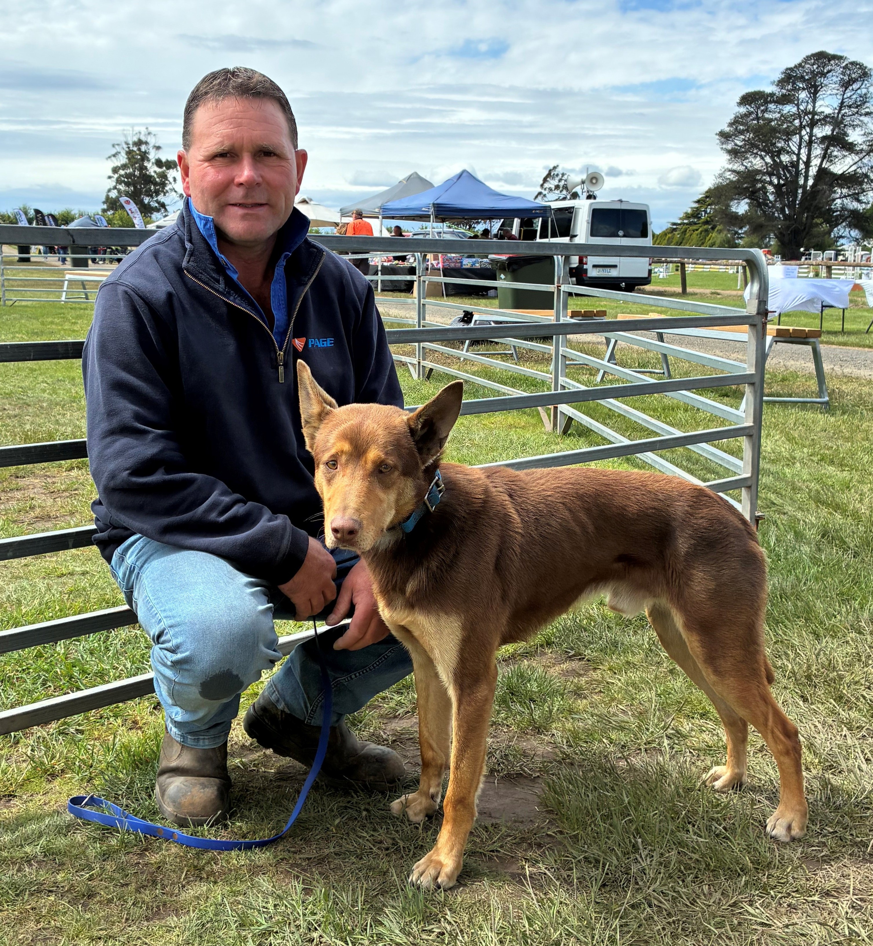Dog Jumping results - Large dogs: Jay Sinclair of Swan Bay with Titan 1 (jumped 2.5m), Patrick Groenewold of Westbury with Maple 2, Matthew Johnston of Birralee with Basil 3.