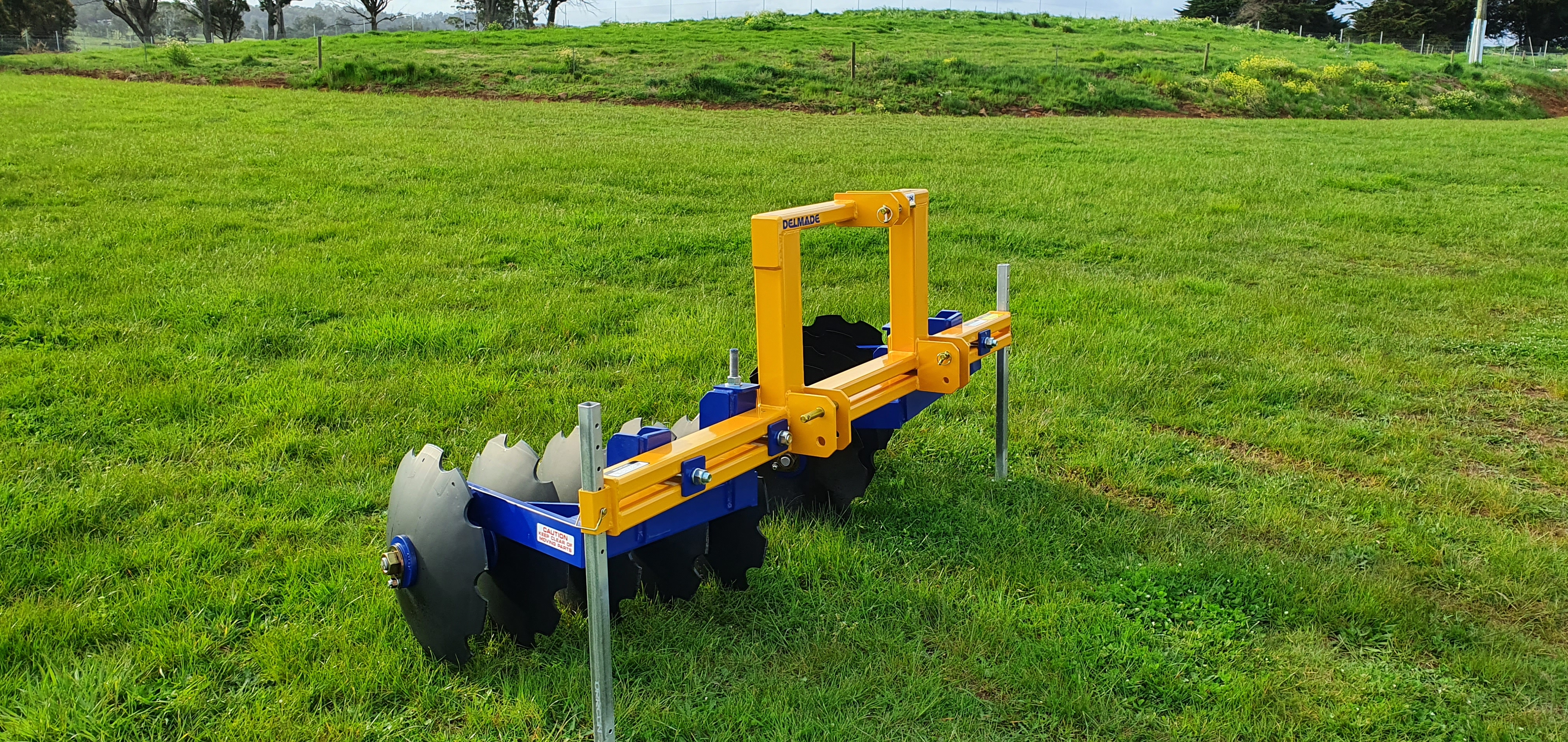The Delmade Rut Eradicator is an economical option that involves filling wheel ruts without the use of an imported filler product like gravel or sand. This tough little unit is built with two gangs on a sturdy mainframe and uses the same gang setup with oil bath bearings as Delmade Offset Discs.